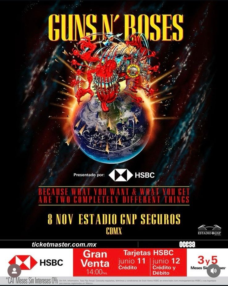 Durante sus últimas visitas, la banda ha dejado en claro que el fuego sigue encendido. Ya sea en grandes estadios o festivales, cada show de Guns N’ Roses es una experiencia total: una mezcla de potencia, nostalgia y emoción que revive la esencia del rock en su estado más puro. Este regreso al Estadio GNP Seguros promete superar cualquier expectativa, con una producción monumental y un setlist que llevará a los fans a un viaje por todas las eras del grupo.